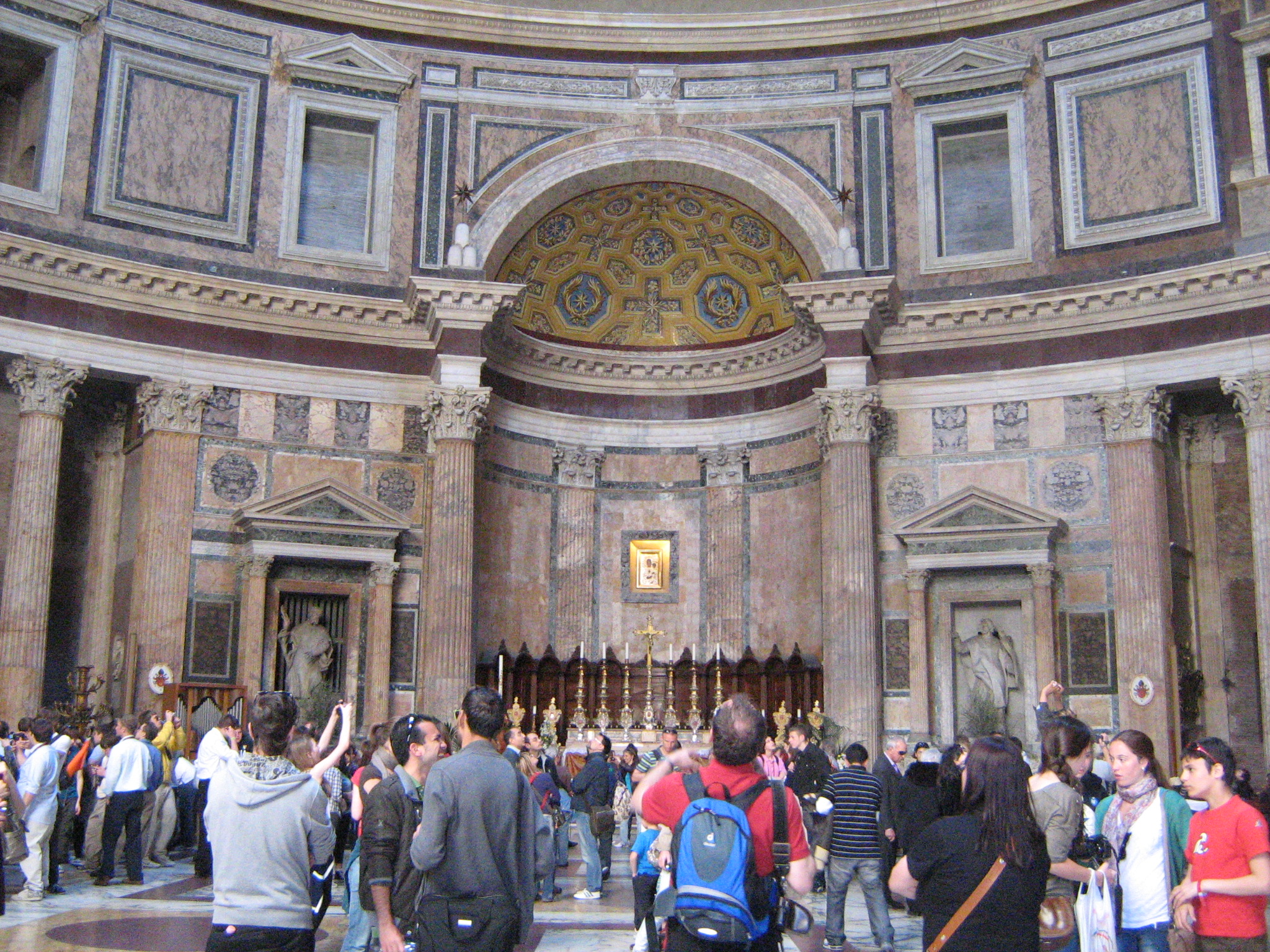 Panteon, hram svih bogova – Panteon u Rimu je najbolje očuvan spomenik antičkog Rima. Sagrađen je oko 126. godine naše ere, tokom vladavine cara Hadrijana. Rimski Panteon je najpoznatiji po velelepnoj kupoli istovetne visine i prečnika – 43,30 m, izgrađenoj iz jednog jedinog bloka kamena. Osim što je bio prva građevina sa kupolom u antičkom Rimu, Panteon je dugo bio zdanje sa najvećom kupolom na svetu.