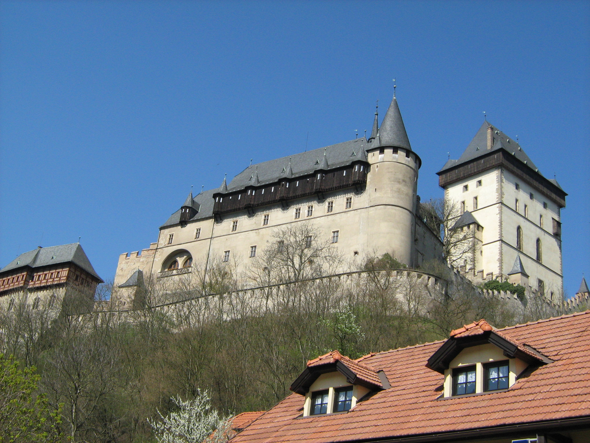 Karlštejn, gotički zamak koji je sagradio najveći češki kralj Karlo IV u 14. veku, služio je za čuvanje krune, relikvija i drugih vrednosti kraljevske porodice. Karlštejn se uzdiže iznad istoimenog sela na oko 20 km od Praga. Smešten je na brdu iznad reke Berounka kao skup kula i visokih zidova, savršeno očuvan. S pravom je jedan od najpoznatijih i najposećenijih zamkova Češke. Do samog zamka se dolazi jedino peške, malčice je uzbrdo, dok se penjete zamak je uvek naspram vas i što se više približavate utisak postaje veličanstveniji.