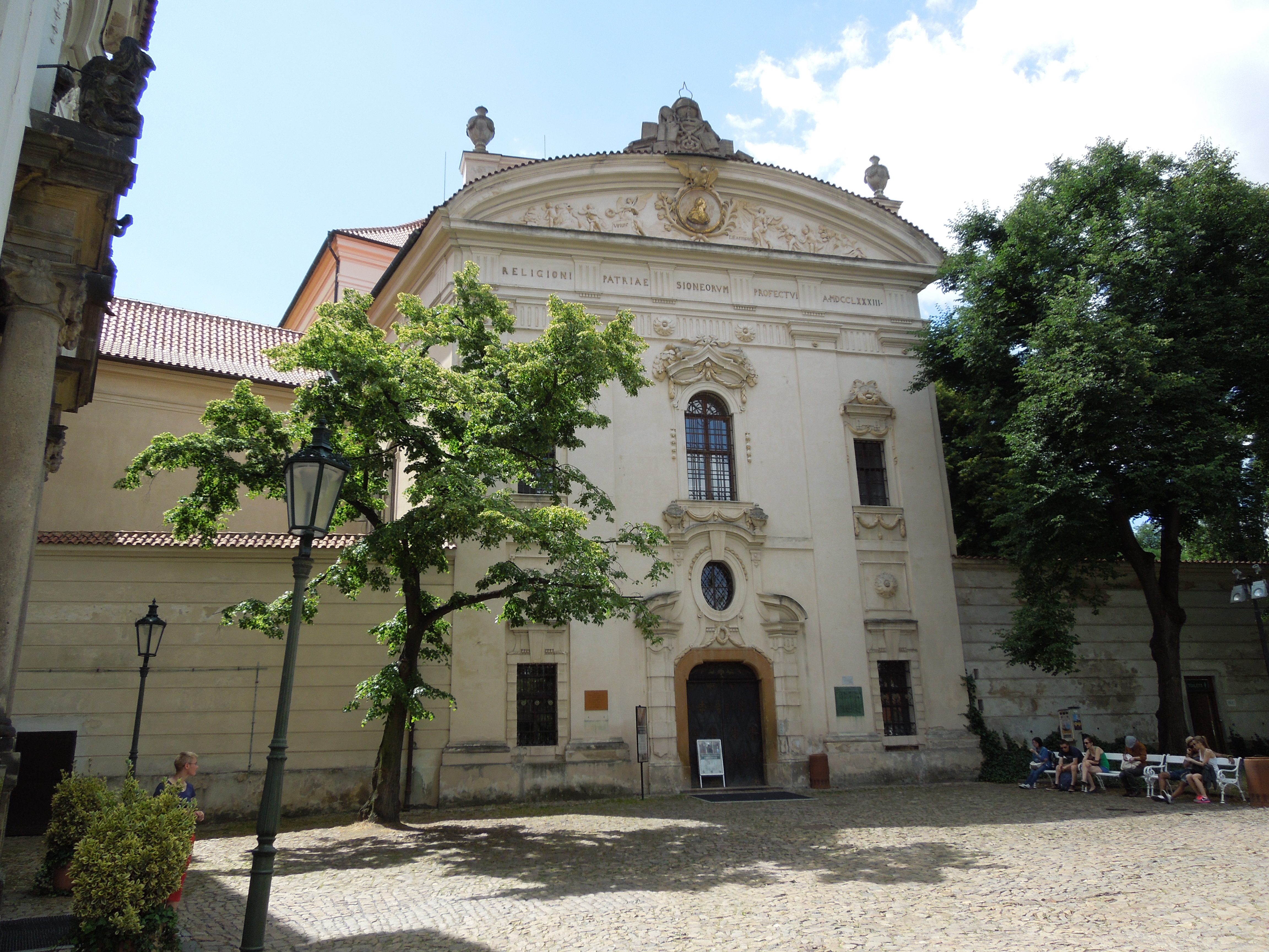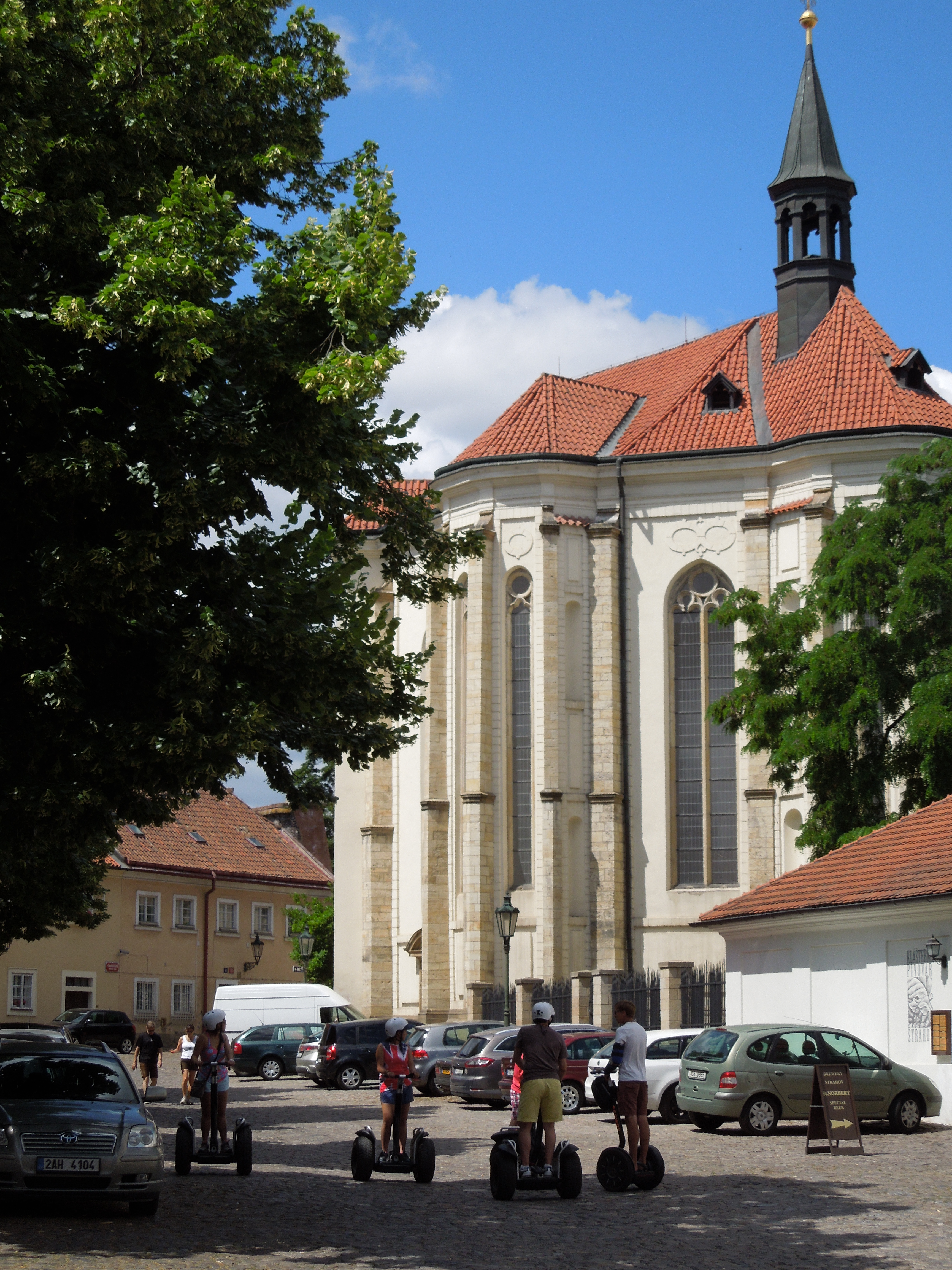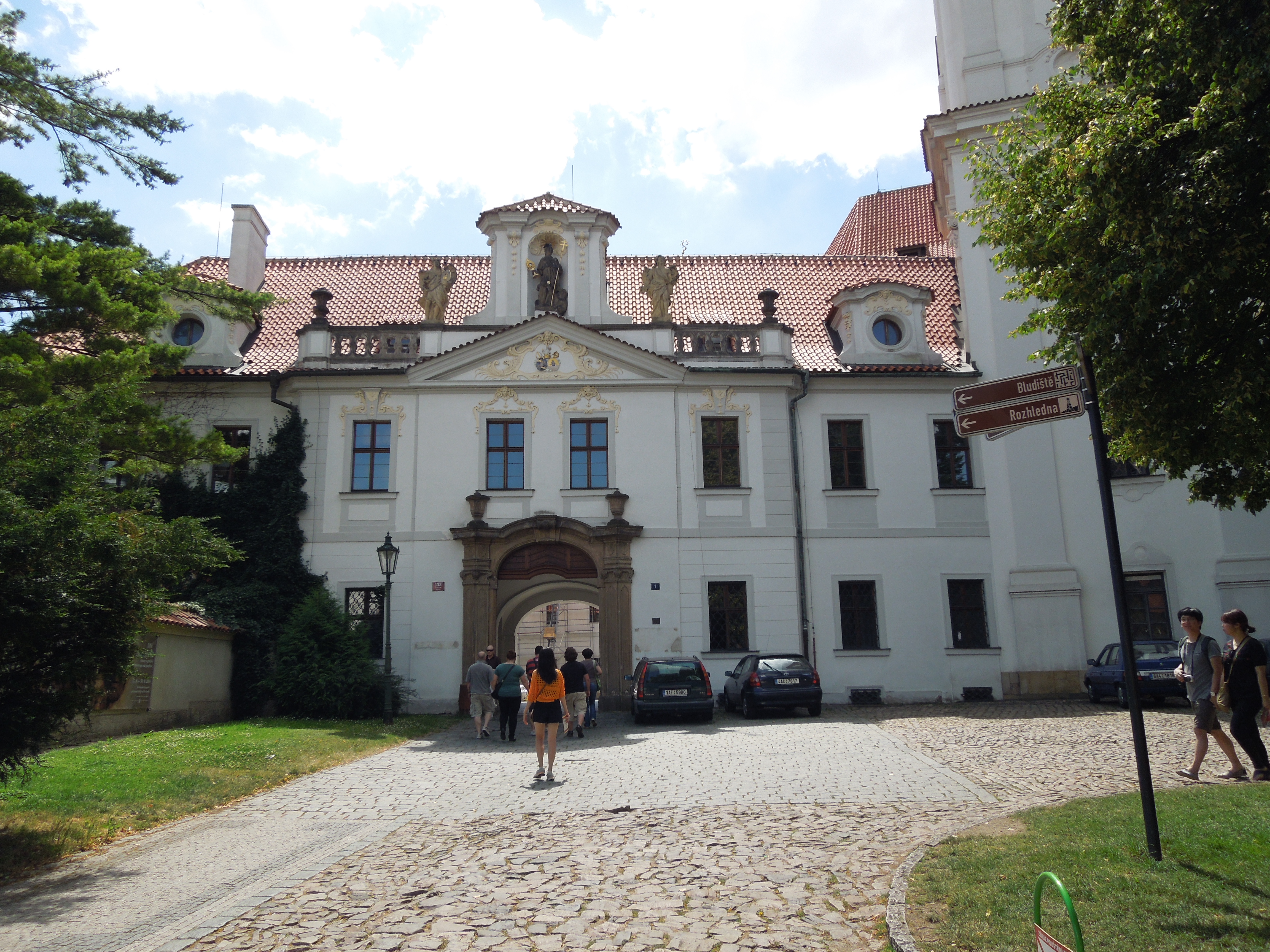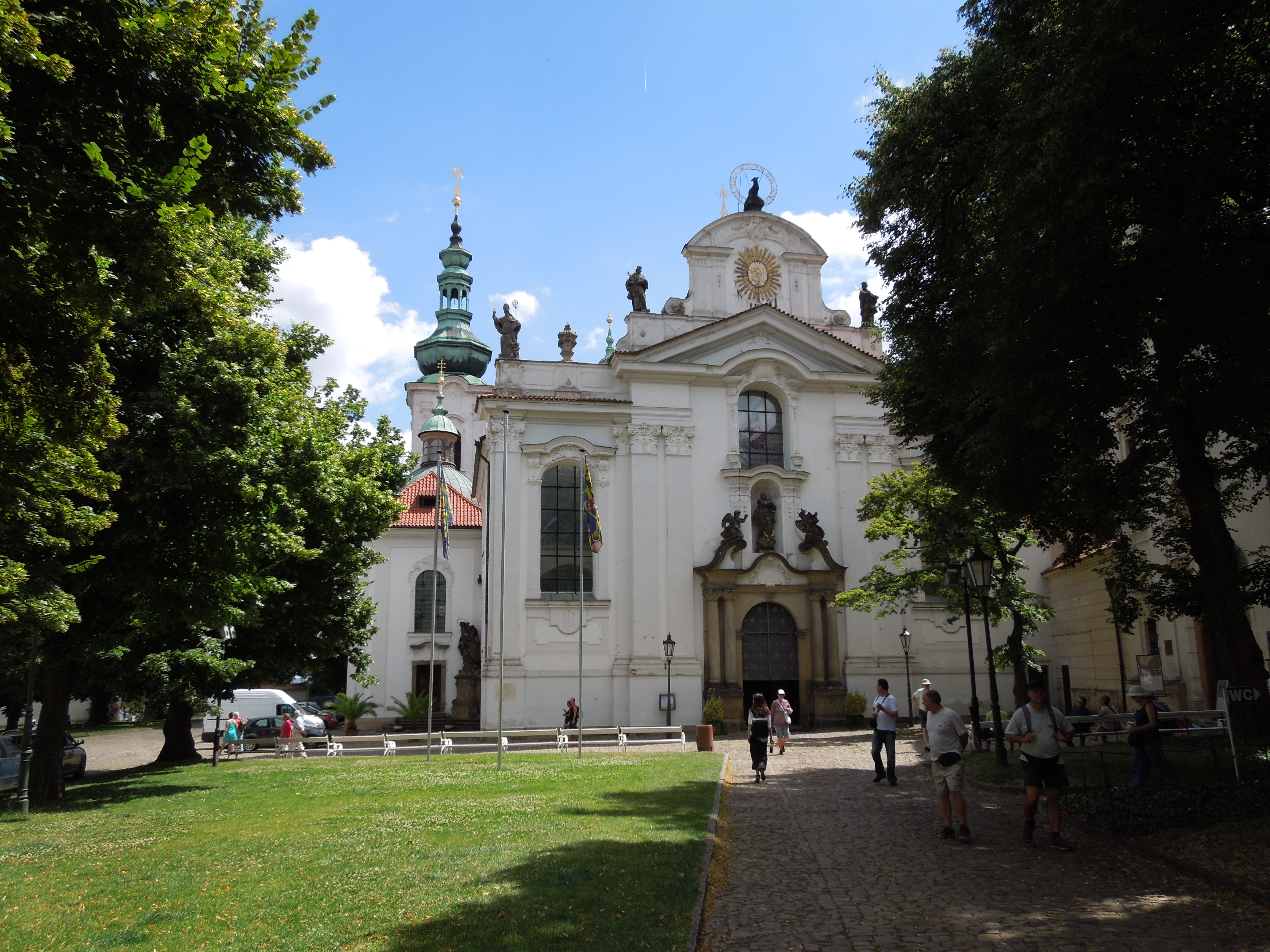 Manastir Strahov je izgrađen 1140. godine i od tada je obnavljan više puta zbog razaranja tokom različitih ratova. Manastir obuhvata područje crkve svetog Roka i bazilike Uspenja Presvete Bogorodice, u kojoj se veruje da je Mocart na orguljama svirao 1787. godine, Strahove galerije i Biblioteke Strahov. Biblioteka je podeljena na dve barokne dvorane: Teološku i Filozofsku. Teološka sadrži 18.000 verskih tekstova, dok se u filozofskom delu nalazi 42.000 antičkih filozofskih tekstova. Poseduje i retka izdanja, predivne barokne freske i geografske globuse iz 17. veka. Najstarija knjiga je Strahovo Jevanđelje iz 9. veka.
