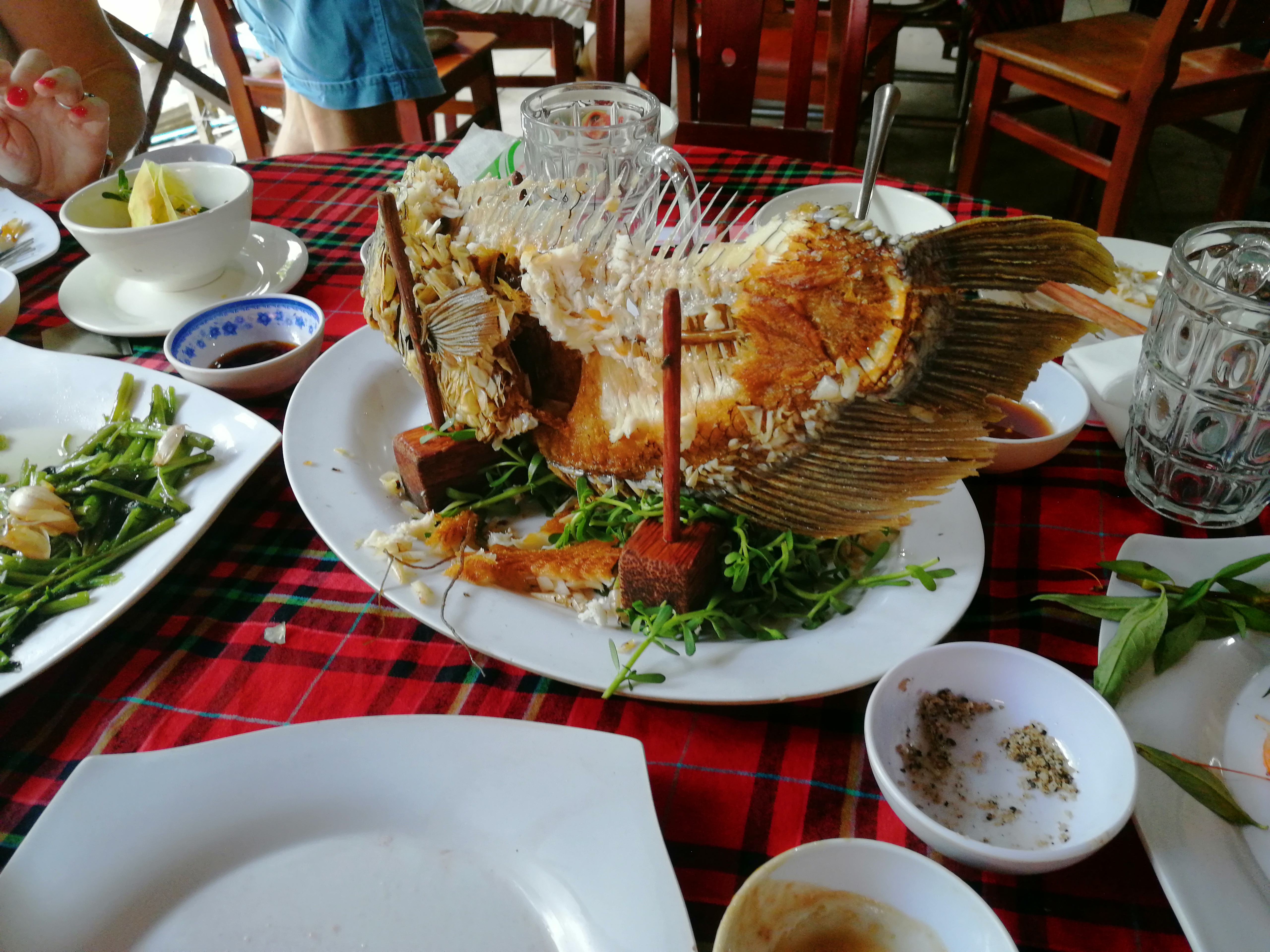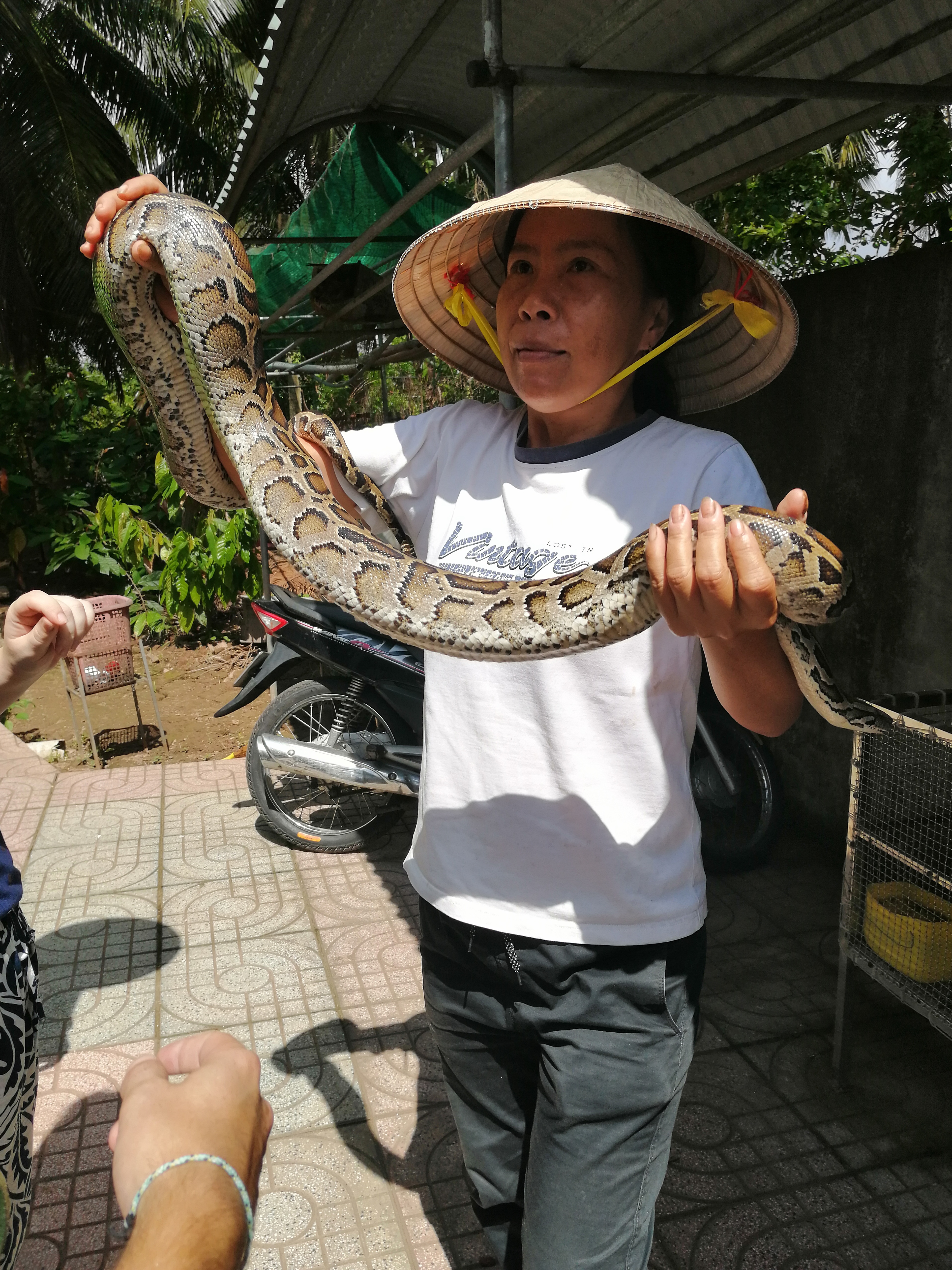 Ručali smo u restoranu na obali Mekonga, a nakon ručka smo svratili i do lokalne farme pčela, gde smo imali priliku da se družimo i sa jednim pitonom.