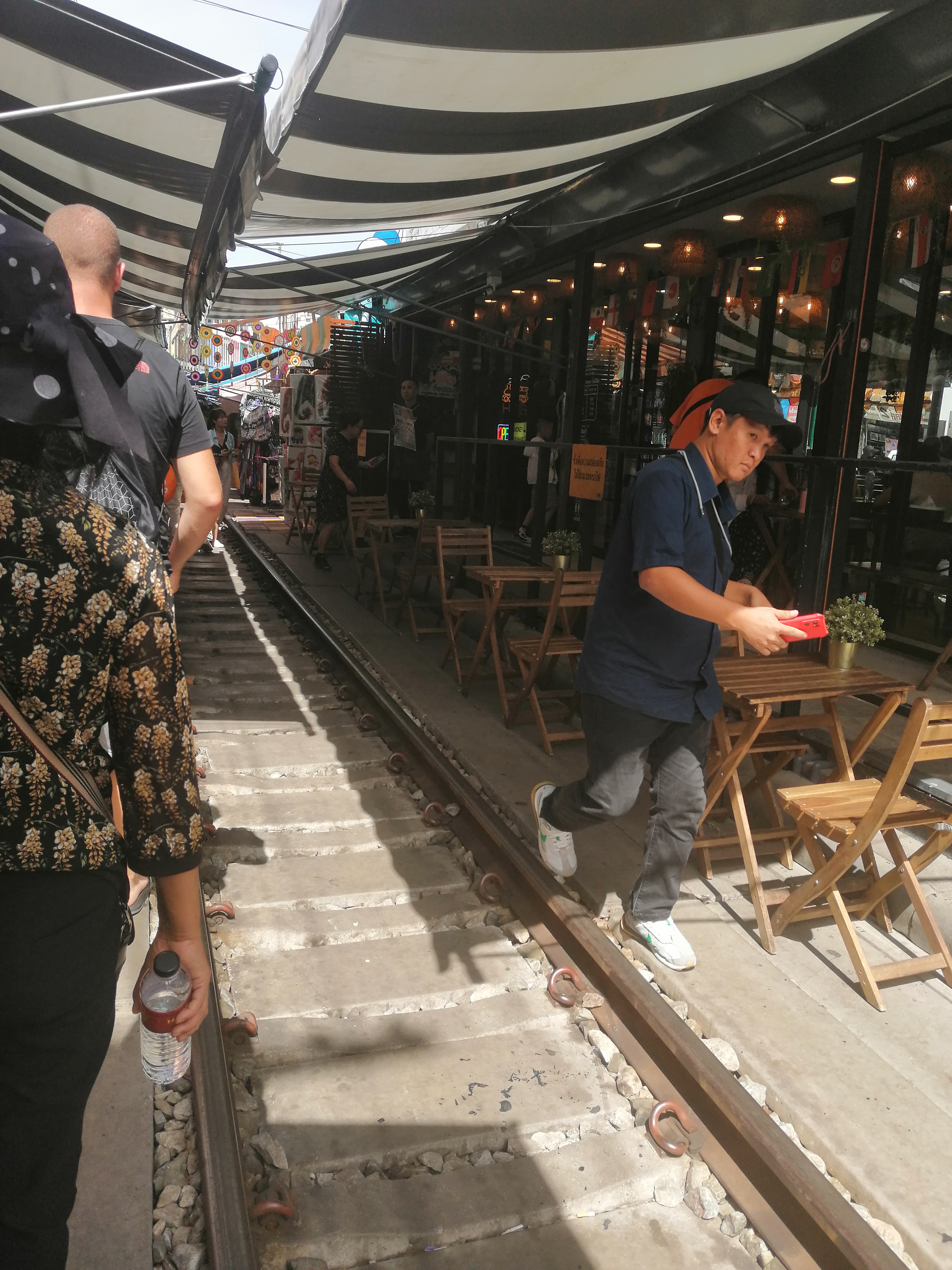 Neverovatno je koliko malo malo vremena treba prodavcima da sklone robu sa puta i da povuku tende da bi voz mogao da prođe. Odmah nakon prolaska voza sve se vraća u normalu: izvlače se tende i vraćaju štandovi sa robom. Ceo ovaj proces traje oko 5 minuta – 8 puta na dan, svaki dan.